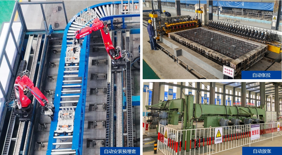 為高質量高效率生產軌道交通用混凝土構件,致力于自動化、智能化生產,銀龍采用自主研發(fā)和與諸多科研院所合作模式,相繼研發(fā)成功高鐵軌道板自動化生產線、軌枕自動化生產線、盾構管片自動化生產線、重載運輸AGV、軌道板3D檢測系統(tǒng)、自動清理模具、自動噴灑脫模劑、自動安裝預埋套管、自動張拉、自動養(yǎng)護、自動放張等自動化、信息化裝備。在保障銀龍自身軌道混凝土構件產業(yè)發(fā)展同時,并向國內外供應整套生產線和裝備。