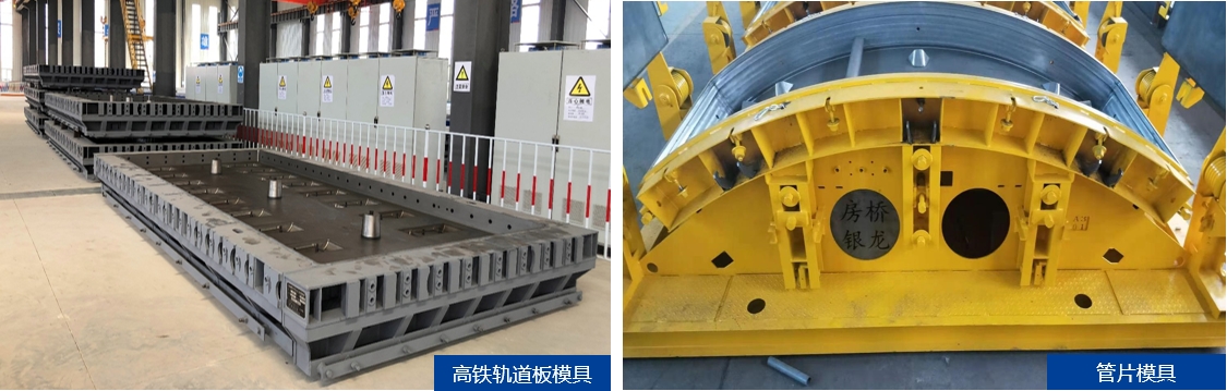 精密鋼膜是保證高鐵軌道板、軌枕、隧道管片、風電混塔塔片、裝配式建筑構件等混凝土預制件各部位尺寸和形位精度的關鍵裝備。銀龍組建集研發(fā)設計、生產制造和安裝服務為一體的技術團隊,建設大型機加工車間、組焊車間、組裝車間,配置數(shù)控激光切割機、數(shù)控車床、數(shù)控加工中心等數(shù)十套高精裝備,用于生產軌道板、軌枕、管片等精密模具,加工精度可達0.01mm,已向國內外多家預制構件廠提供了數(shù)千套高精模具。